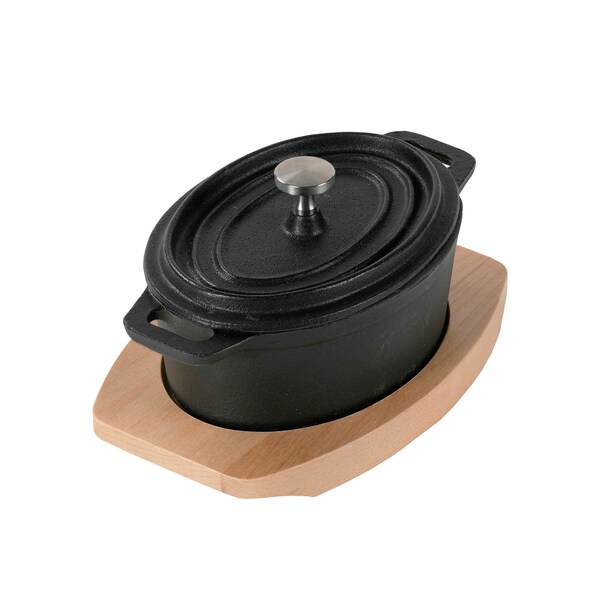 FREYERSBACHERFreyersbacher Mini Cocotte 12x8,5 cm Gusseisen, Kleiner Emaille Topf | Oval, mit Brett und Tuch