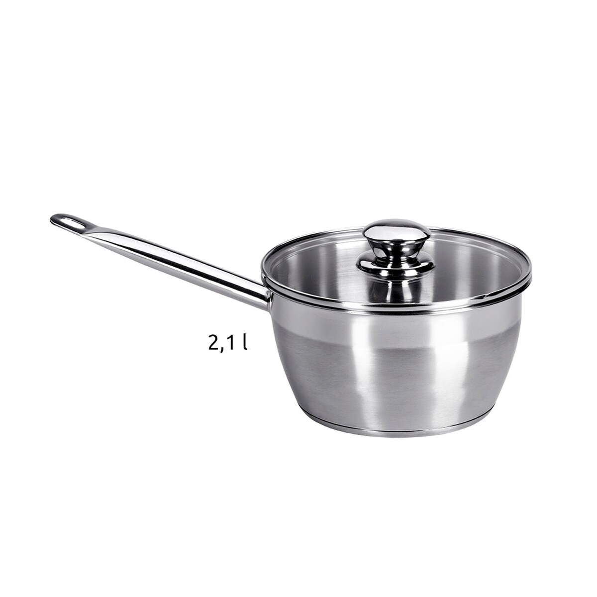 Die Töpfe aus hochwertigem Edelstahl mit ihren praktischen Glasdeckeln bieten Ihnen die Möglichkeit, gleichzeitig Saucen, Beilagen oder Suppen zuzubereiten. Der extra hohe Rand der Töpfe ermöglicht das Kochen größerer Mengen ohne Überlaufen, und der tropffreie Schüttrand sorgt für ein sauberes und präzises Ausgießen. Die Deckel mit integriertem Druckausgleich verhindern lästiges Klappern und unkontrolliertes Überkochen, während der robuste Edelstahl sich sowohl für den Herd als auch für den Backofen eignet.