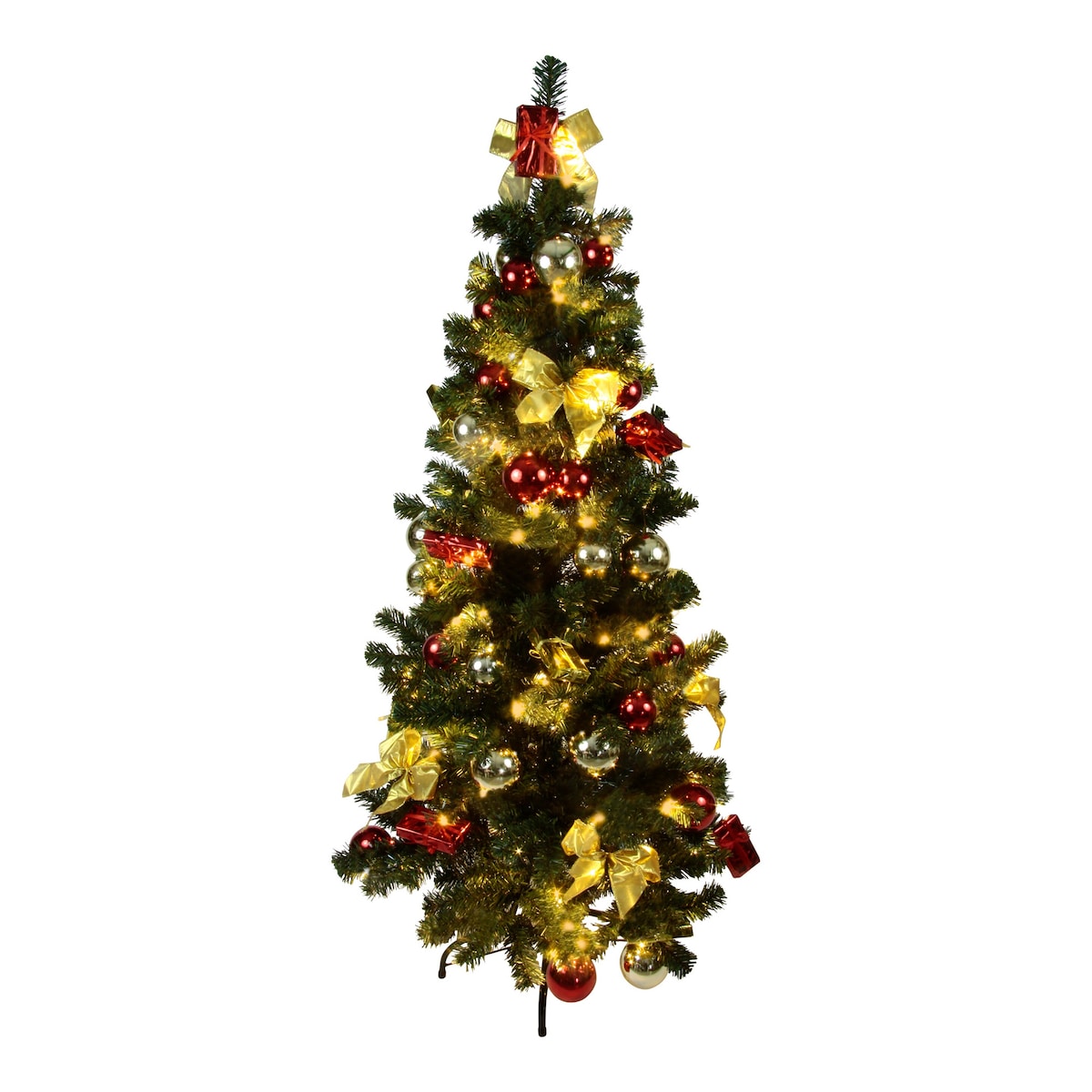 Für einen Weihnachtsbaum ist selbst in der kleinsten Wohnung Platz. Dafür sorgen diese dekorierten LED-Weihnachtsbäume, die in drei verschiedenen Größen erhältlich sind, auf besonders schöne Weise. Jeder LED-Weihnachtsbaum ist bereits fertig dekoriert und zwar - je nach gewählter Variante - in rot/gold oder in silber und damit passend für jeden Geschmack. Neben den Weihnachtsbaumkugeln, Schleifen und andere Deko-Elementen gehört natürlich auch eine LED-Lichterkette zum Baumschmuck dazu. Sie besteht (je nach Baumgröße) aus 50, 100 oder 150 kleinen Lämpchen, die den Baum in festlichem Glanz erstrahlen lassen. Damit ist weihnachtliche Stimmung garantiert.