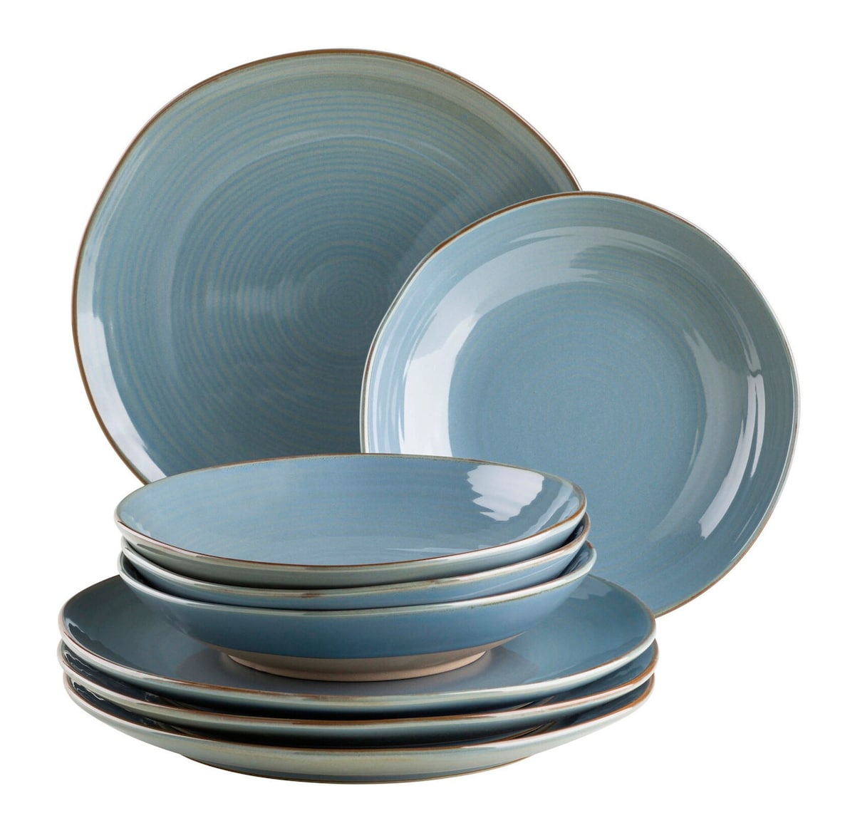 Moderner Brit-Chic für Ihren Esstisch – dieses Versprechen löst die Serie "Nottingham" der österreichischen Traditionsmarke MÄSER perfekt ein: Aufwändig gefertigt aus hochwertigem Steinzeug, designed um eine aufregende Brücke zwischen Retro- und modernem Look zu schlagen. Neben seinem grundlegend unvergleichlichen Charakter glänzt dieses Geschirr Set nicht zuletzt auch dadurch, dass kein Teil exakt wie das andere aussieht. Eine händisch aufgetragene reaktive Glasur und organische Formen anstelle von perfekten Rundungen sind hierfür ausschlaggebend. Alle Teile sind spülmaschinen- und mikrowellengeeignet, und dadurch äußerst pflegeleicht. Dieses Service wird in einer vielfach auf Bruchsicherheit getesteten Verpackung aus ressourcenschonenden Materialien versendet. Im Sinn einer objektiven Vergleichbarkeit gehen unsere Füllmengenangaben von einer randvollen Befüllung aus. Bitte beachten Sie, dass durch die besondere Glasurtechnik alle Teile eine einzigartige Musterung aufweisen und farblich voneinander sowie vom abgebildeten Produkt abweichen können. Minimale Unebenheiten und kleine Einschlüsse in der Glasur können aufgrund des hohen handwerklichen Fertigungsanteils auftreten.