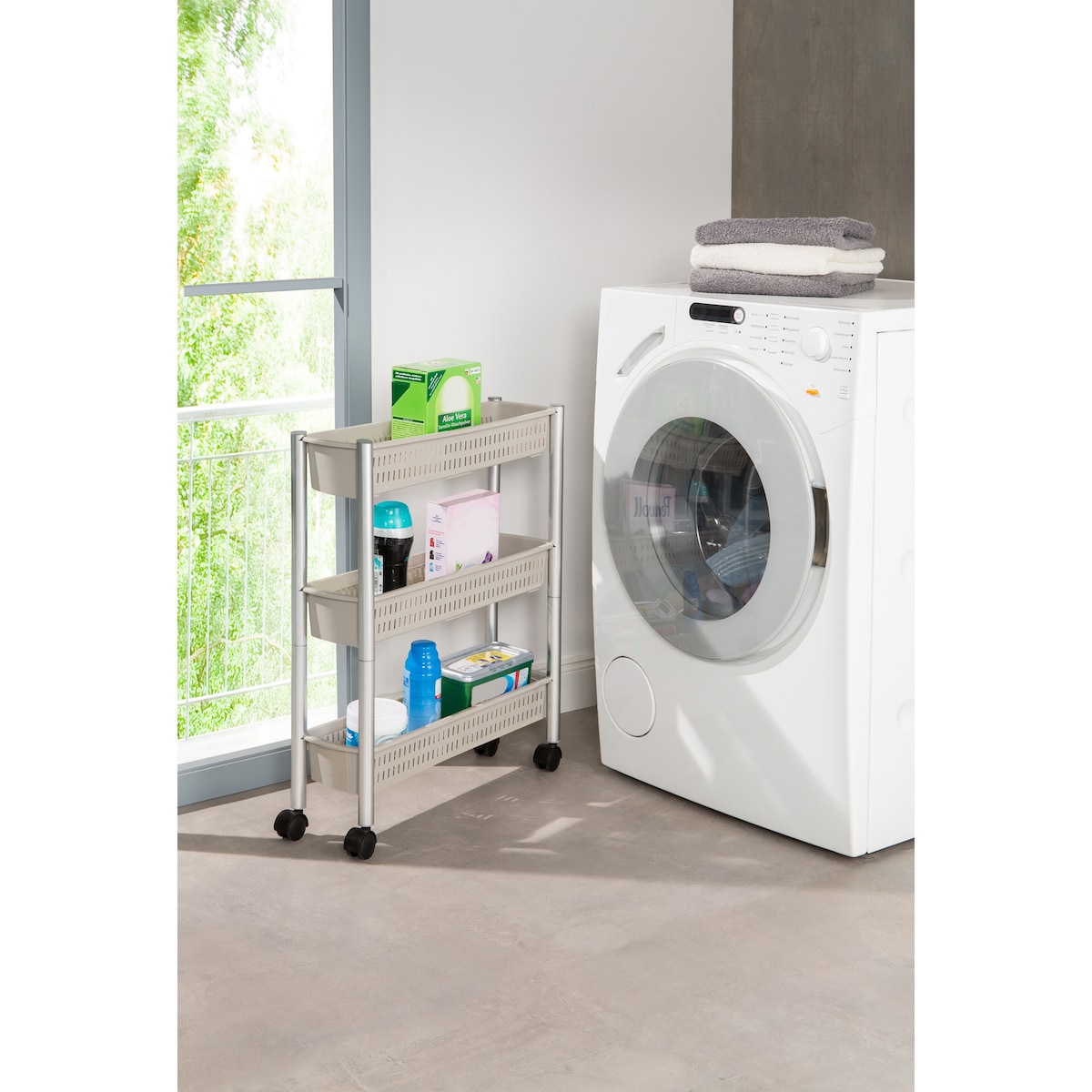 In Ihrer Küche oder im Bad ist oft zu wenig Platz? Unser Rollwagen schafft Abhilfe! Die drei geräumigen Körbe bieten viel Stauraum, um Vorräte, Putz- oder Spülmittel unterzubringen. Durch die vier stabilen Doppelleichtlaufrollen ist er leicht verschiebbar, selbst in engen Nischen. Die stabile Konstruktion macht ihn perfekt für Räume ab 20 cm Breite. Optimieren Sie Ihren Raum mit diesem cleveren Rollwagen und maximieren Sie die Effizienz in Ihrem Alltag. Ordnung und Platzgewinn – das perfekte Duo!