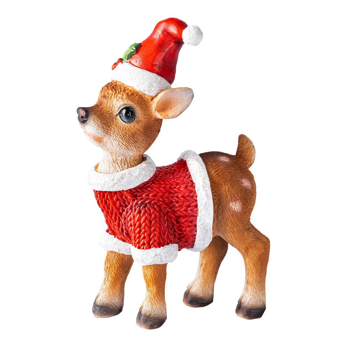 Verbreiten Sie festliche Freude mit diesem niedlichen Rehkitz im Weihnachtskostüm. Das Weihnachts-Bambi ist die perfekte Dekofigur, um Ihr Zuhause in zauberhafte Festtagsstimmung zu tauchen. Hergestellt aus hochwertigem Material und mit Liebe zum Detail gestaltet, wird es in Ihrem Wohnzimmer, auf dem Kaminsims oder als Tischdekoration für bewundernde Blicke sorgen.