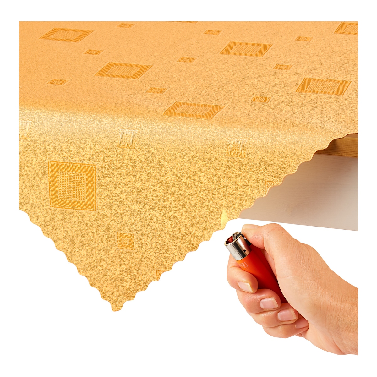 Diese Tischdecke mit attraktivem Rautenmotiv ist aus schwer entflammbarem, wasser- sowie schmutzabweisendem Stoff gefertigt und eignet sich so auch ideal für eine Tischdeko mit Kerzen.